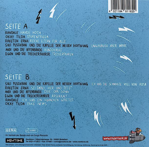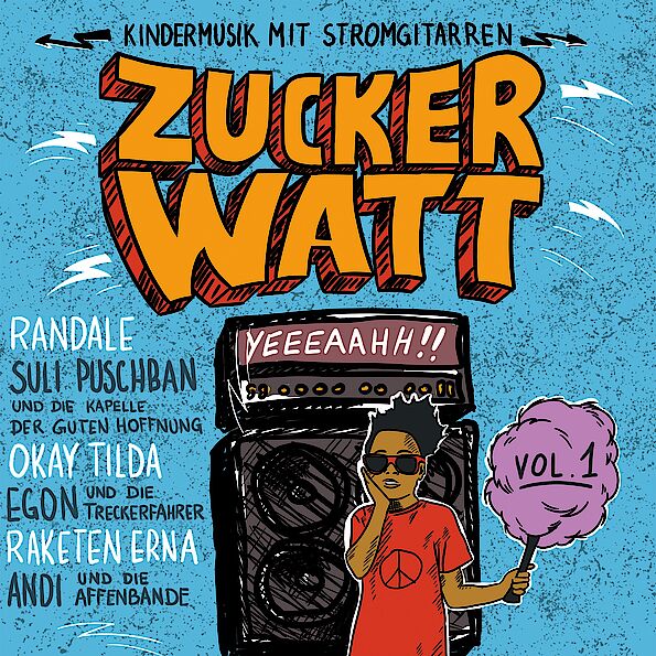 Zuckerwatt! Watt? Mit Zucker? Eher Gitarren mit Schmackes. Musik für Kinder und die ganze Familie. Aber eben nicht zuckersüß, sondern mit Haltung und Aussage und Spaß und Gitarren. Richtige Bands, mit richtigen Menschen. Kein Kirmespopschlagertechno, sondern richtig gut gespielte Songs mit echten Instrumenten. 6 Bands, alle vom Netzwerk Kindermusik e.V.