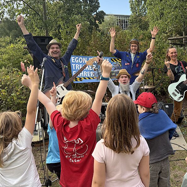 Wir spielen gerne Konzerte. Wir haben schon in Kindergärten, in Schulen, auf Festivals, auf Straßen- und Familienfesten, auf Feiern und in Clubs gespielt. Meistens spielen wir als richtige Band mit Schlagzeug, Gitarre, Bass und Mikrofonen. Wenn es erwünscht wird spielen wir aber auch gerne etwas leiser mit akustischen Instrumenten (wie z.B. manchmal in Kindergärten). Wir haben verschiedene Programme im Repertoire: ein Standardprogramm, ein Weihnachtsprogramm und ein Laternenfest- und Halloween-Programm.
